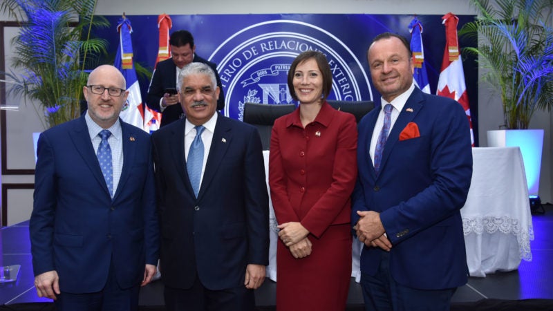 Santo Domingo, RD. – Directivos de la Cámara de Comercio Dominicano-canadiense (CAMCHAMRD) participaron junto a embajadores, cónsules, empresarios y personalidades de la vida nacional asistieron al acto protocolar del Memorandum de Entendimiento firmado por el Ministerio de Relaciones Exteriores, Miguel Vargas Maldonado y el viceministro adjunto para América Latina del Gobierno de Canadá, Michael Grant.