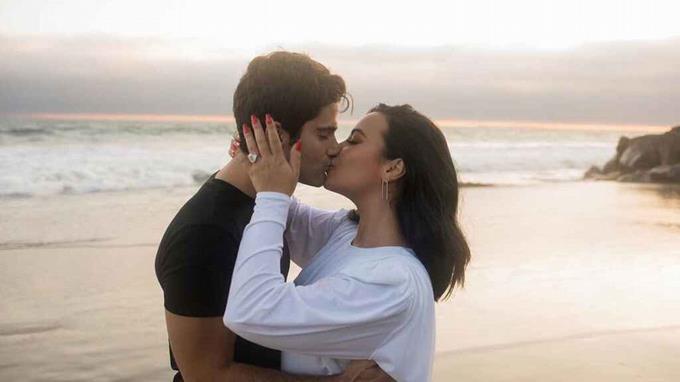 La cantante estadounidense Demi Lovato y el actor Max Ehrinch se han comprometido en una romántica petición de mano en la playa en la Lovato luce un impresionante anillo.