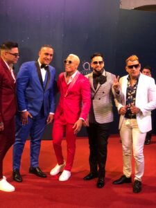Los hombres se van siempre a lo seguro innovando con detalles en sus outfits. En el caso de los hombres no importó a qué género musical se dedican, tanto merengueros, bachateros, como urbanos, apostaron por trajes acordes a la ocasión y a su estilo.