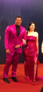 En esa misma tónica, el presentador Jhoel López modeló vestido de negro completo para dar protagonismo a un blazer rosado fucsia, un vivo estilismo del diseñador dominicano José Jhan.