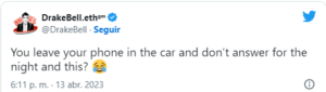 “Dejas tu teléfono en el carro, no contestas por la noche y ¿sucede esto?”, escribió Bell en Twitter junto a un emoji de risa.