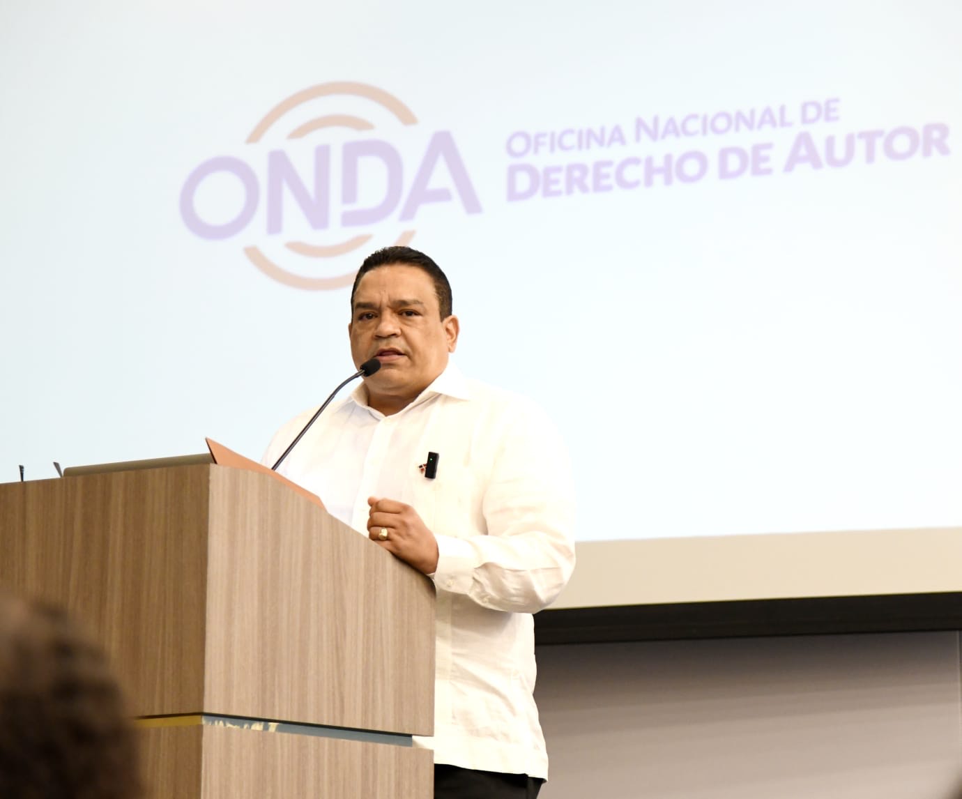 Gonell Cosme exhortó a los presentes a aprovechar la oferta de la ONDA de registro libre de trámites y dijo que gracias a esta iniciativa en lo que va del 2023 se han formalizado más de 7 mil registros de obras, lo que dijo es un record en la historia de la ONDA.