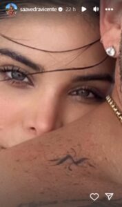 A través de sus historias de Instagram, Vicente publicó una imagen de lo más artística que muestra el rostro de la maniquí apoyado en su hombro.