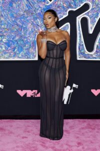 La rapera mostró sus curvas envidiables con un vestido transparente de Brandon Blackwood.