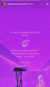 «Sé que pregunten donde estoy… trabajando para ustedes llenando me de mucho para crear… con todo. Con amor, Yailin», expresó la exponente urbana.